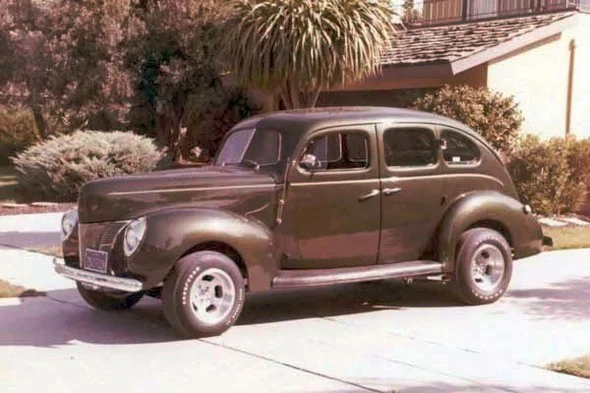 When Roy moved to San Jose with Mutual of Omaha in 1975, he had a company car. Later, when he left to form a pension company under the auspices of New York Life, he needed another car. This ’40 Ford Deluxe four-door sedan was his daily driver for three years, and his three kids remember being carted around town and getting many admiring comments and a frequent thumbs-up from another driver.